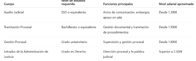 Dentro de los distintos tipos oposiciones justicia, encontrarás cuerpos con tareas más operativas y otros con mayor responsabilidad administrativa o jurídica. Entender estas diferencias te ayudará a elegir la oposición que mejor encaje contigo.